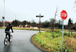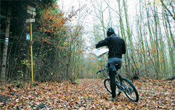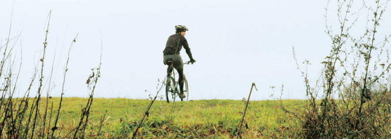 Ale co to? Už nad vesnicí vidíme, že se tu cosi děje. Je to vůbec možné?! Ono se tu ještě závodí! Trefili jsme se přímo doprostřed závodu Českého poháru v cyklokrosu! Tak to si nenecháme ujít. Pojídáme buřtíka u stánku a pijeme grog. Občas povykujeme na závodníky a jsme rádi, že nemusíme závodit. A také konstatujeme, že se za těch dvacet let nic nezměnilo. Stejné závody a kolem nich stejné tváře činovníků, trenérů a bafuňářů. Jakoby se zastavil čas. A když kolem nás projíždí pár jedinců na obstarožních rámech našeho mládí Alan a Guerciotti, dáváme si ještě jeden grog a raději pokračujeme k cíli. Už nás čeká pouze pár kilometrů lesem stále po modré. Cestička je zde úzká a uklouzaná. Volíme raději opatrnější jízdu, abychom nakonec ještě neryli nosem v hlíně. Poslední dvoukilometrový sjezd dolů z hřebene už je hračka a za teď již opravdu citelného chladu a stálého deště balíme kola a vracíme se domů.