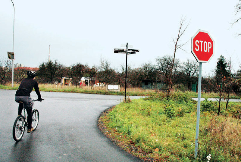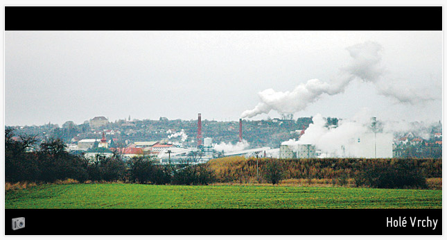 Jsme však cyklisté, motory nemáme, a tak musíme šlapat dál. Za Domousicemi uděláme vlevo hleď, vlevo toč a po modré značce stoupáme ostře na vrch Křemenice (334 m n. m.), který je středem Přírodního parku Čížovka. Cesta je rozježděná od lesáků a jízda není příliš příjemná. Plahočíme se po hraně hřbetu, který nás dovede zpět až nad Mladou Boleslav a na který jsme na začátku výletu nastoupali. Jezdí se tu většinou po širokých cestách. Občasnými průseky již vidíme dominantu, která dala název celému výletu – boleslavský komín. Jenže to musíme ještě přežít jediný opravdu ostřejší sjezd do osady Dolánky. Jede se pod sloupy vysokého napětí, pěkně kolmo na vrstevnice. Žádný hard core, ale zdvih odpružení se tu občas hodí. Otáčíme vlevo a pokračujeme po modré směrem k vesnici Holé vrchy. Cestou se rozpomínáme na mládežnické pohárové závody a cyklokrosy, kterých jsme se tu bratru před 20 lety účastnili. Vzpomínáme a utvrzujeme se v tom, že je lepší se tu jen tak v klidu motat po lese a ne si „natahovat držku“ při nějakém soutěžení.