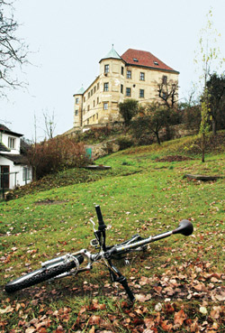 Stále po červené pokračujeme na Vinařice. Míjíme zámek, který se majestátně vypíná nad pojizerskou rovinou již od 16. století. Zub času na něm hodně zapracoval, ale vypadá to, že stavbu již někdo postupně asanuje. S myslí na to, kolik peněz asi podobná rekonstrukce stojí, sjíždíme prudce z kopce do Dobrovic.
