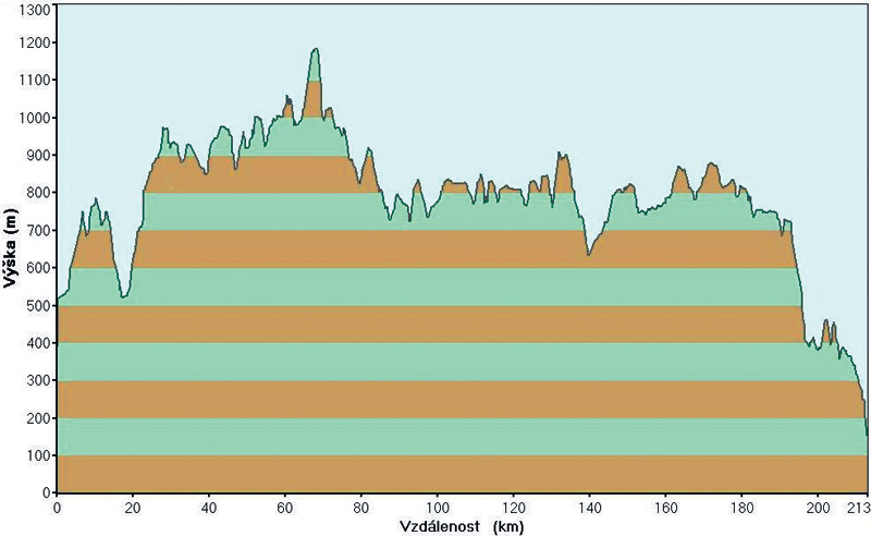poprvé V den D startujeme z malého města Luby. Počasí nám moc nepřeje, několik dní bez ustání pršelo a na pořadu dne je tak očekávané bláto. Vyrážíme směrem na Kraslice po červené turistické značce, která nás vyvede po asfaltu z města, za nímž již vplouváme do okolních hvozdů. První zajímavou zastávkou je skalní útvar Vysoký kámen, který vypadá jako zřícenina hradu. Doporučujeme odložit kola a vyškrábat se na ochoz, který nabízí krásný rozhled do okolí. V Kraslicích, které je také městem proslaveným výrobou dechových nástrojů, sesedáme ze strojů za účelem malé svačiny. Při posilňování v restauraci U rytíře stále musíme myslet na následující kopec v délce deset kilometrů, během nichž máme nastoupat 500 výškových metrů. Jak se ale říká, nic se nejí tak horké. Tento úsek ubíhá překvapivě klidně po lesní zpevněné cestě, přičemž ho celý s Tondou doslova prokecáme.