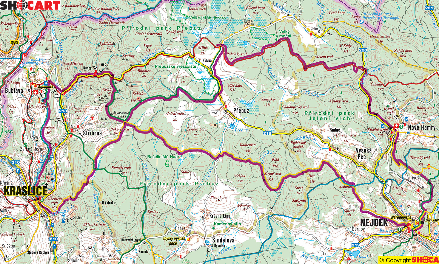 Turistické informace: Nejdek – románská věž, kostel sv. Martina (1756), Kraslice – tradiční výroba hudebních nástrojů, rozhledna na Olověném vrchu, výhled na Špičáku, památník obětem 2. světové války nedaleko Přebuzi, rozhledna na Tisovském vrchu.