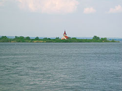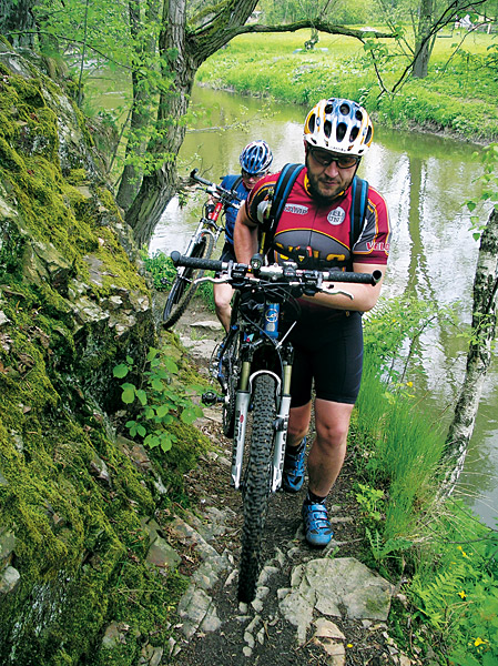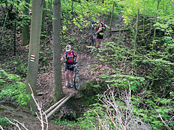 Napojujeme se na stezku souběžnou s korytem, kterou tvoří hrubý asfalt, a po chvilce také na modrou TZ. Poslední kilometr a pak už jen následuje vzájemné potřásání rukou s konstatováním – cíl dobyt. Z hráze spojující Pavlovské vrchy pořizujeme ještě pár snímků ostrůvku, jež zbyl po zatopení vesničky Mušov. Z té se dochoval pouze na něm stojící kostel sv. Linharta. V motorestu u Jezera pak již čekáme na odvoz domů. Tachometry na našich kolech ukazují ujetých 90 km, takže jsme se „sekli“ o 30 km. V nohách máme celkem 235 km převážně terénem.