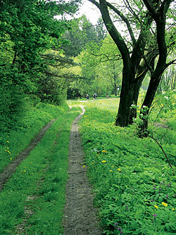 napojujeme na polní cestu označenou také cykloturistickými značkami. Po