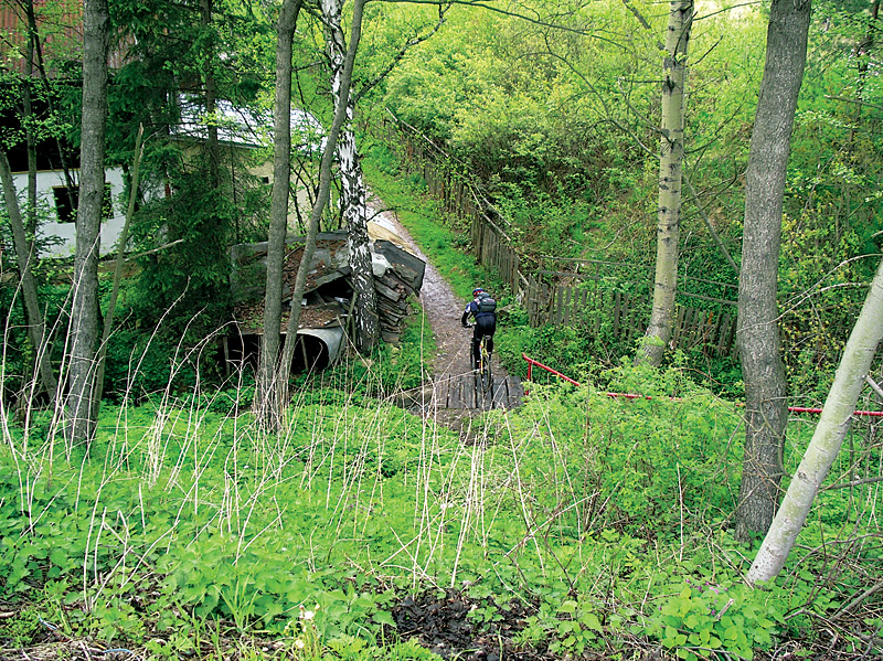 chvíli se ocitáme v lese, kde podmáčený jílový podklad vytvořil docela