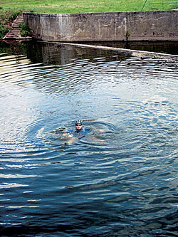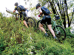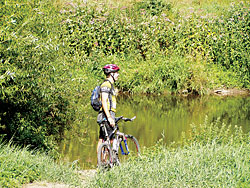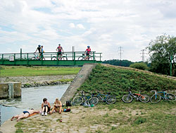 Další den nasedáme na kola brzy ráno, aby jsme byli včas v Bakově, kde máme sraz s dalšími kamarády Čmeláky, kteří s námi dojedou až k soutoku. Nejdříve se musíme dát směrem na Svijany stále po cyklotrase č. 3 a pak se napojujeme na zelenou značku vedoucí do Mohelnice. Odtud je to jednoduché, stačí neztratit červenou značku až do Benátek. Kousek za Bakovem odbočujeme vlevo, na širokánskou louku. Tady pozor, značka je schovaná v hustém porostu. Po louce, asfaltu a pěšině kolem chatové oblasti, vesměs po klidné rovince, se dostáváme do Mladé Boleslavi. Červená značka nás vyvádí ven z města, na velmi příjemnou cestu po louce. Těžko pojmenovat, jestli jde o pěšinu nebo polní cestu, něco mezi, ale skvělé. Jediná nevýhoda je, že není úniku před sluncem, které docela nabírá na intenzitě. Proto celí vyprahlí končíme v hospodě U hřiště nedaleko Pískové Lhoty. Další část cesty do Benátek je okouzlující. Úzká pěšina se klikatí většinou v lese hned podél řeky. Lehké technické pasáže se dají prosvištět ve velké rychlosti, čím rychleji, tím jsou zážitky lepší. Dojíždíme až do Benátek, kde se dá také poměrně dobře najíst. Pokračovat dál je možné po zelené i po červené, ale vojenský odstín je, věřte nevěřte, lepší. Vede přes Kochánky do Tuřic. Pak nezbývá než pokračovat bez doprovodu značení kousek po asfaltu směrem k dálnici a těsně před ní uhnout vlevo na polní cestu, která vás dovede do Skorkova. Dál zase kousek po asfaltu a pak hned vlevo na červenou značku, po které se jede jen kousek k mostu přes řeku. Po břehu vede klidná a velmi pěkná cesta až ke zdymadlu. Tady se dá dobře koupat, a pak po příjemném osvěžení (pokud se zrovna nevydáte na cesty v chladných podzimních dnech) vás pěšina zavede na modrou značku vedoucí chatovou oblastí a dále přímo do Káraného. Nezbývá než doplnit tekutiny v nějaké z vyhlášených hospod a zakončit tak dobrodružné (aspoň místy) víkendové putování. Asi o kilometr dál se Jizera vlévá do Labe. K soutoku vede pěšina, je to jen kousek.