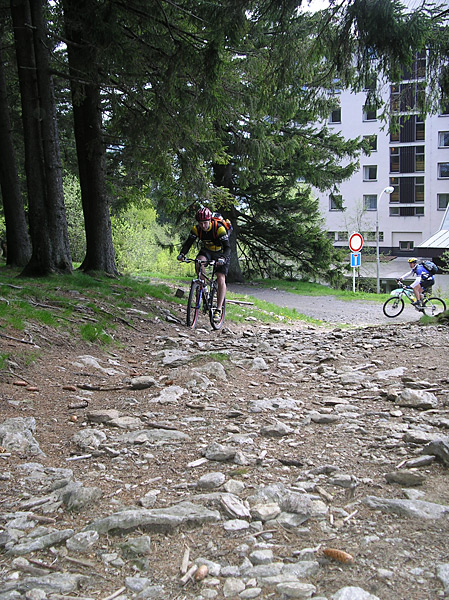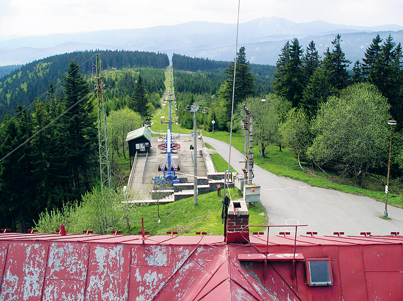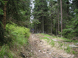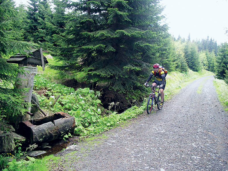 Tedy od vrcholu. Projíždíme Železnou Rudou až na parkoviště, které je u chaty Hofman, tudy vede lanovka ze Špičáku na Pancíř. Špičák je známé lyžařské středisko, vrchol se nachází na protějším kopci od Pancíře. Poslední doladění a můžeme vyrazit. Nástup je hned velmi strmý. V tisíci metrech nad mořem není nejtepleji, tak se alespoň zahřejeme. Jedeme přímo pod lanovkou. Na asfaltce se dáváme doleva, abychom po pár metrech zatočili doprava. Projedeme kolem závory a po šotolinové cestě se blížíme k pramenící Úhlavě.