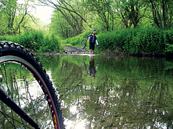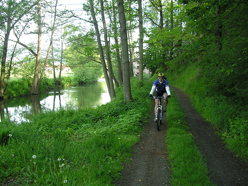 Po dobrém jídle vyrážíme dál, zkoušíme trochu improvizovat cestou podél toku a bez použití mapy, co to jde. Hráli jsme kličkovanou mezi domky, chatkami a rybníky, až nás to vyhodilo na silnici č. 192 kousek u mostu přes řeku. Pak nás příjemná asfaltka vedla přímo do Dubové Lhoty. Sjíždíme k řece, kterou přejíždíme po mostě. Dál nás čeká překvapení (podcenili jsme nastudování mapy…). Rameno Úhlavy není kudy přejet, tak tretry dolů a brodíme. Na druhé straně se cesty rozdvojují, Mirek jede vpravo a já vlevo. Obě cesty končí močálem a neprostupnými houštinami, za nimiž je určitě polní cesta, kterou jsme chtěli jet po proudu až do Janovic. No nic, vracíme se. A dál silničkami přes Janovice, Rohozno, Bezděkov dojíždíme do hotýlku Rual, kde jsme se kolem osmé ubytovali. V hotelu je výborná kuchyně, dá se posedět i na zahrádce. Z okna pokoje je vidět přímo na Úhlavu.