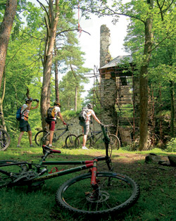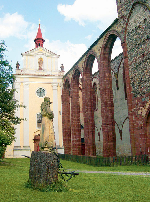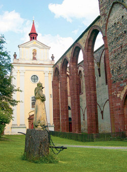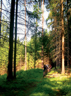 Rozžhavený kotouč slunce se nabodl na věž kláštera. Svatý Prokop ale dál stojí v poklidu na nádvoří mezi staletým zdivem. Stejně, jako ví, že hned tak někdo nerozluští stavitelův vtípek, zakletý do zdiva věže, je mu jasné, že za pár desítek minut se už slunce bude koupat v řece. Není z celého léta snad právě tahle hodina, kdy pařák přechází ve smířlivý podvečer, tím nejcennějším? Svižný trail po kruťáckém šplhu vozovou cestou z Ledečka přivádí dvoukolé poutníky zpět k městu Sázava. Nízké slunce oslňuje a jakoby víly a skřítkové plnými hrstmi rozhazovali zlato po cestách a do všech koutů lesa. Ostře vykrojená zatáčka či prudké zatažení za brzdu zvedne proti proudu světla krásně prokreslený oblak prachu. Ten pohled se však jezdci nabídne jen na pár okamžiků, záhy on sám oblak rozežene. Zatáčka níže na cestě ale možná nabídne další.