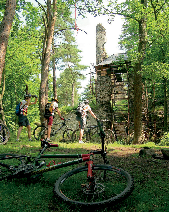 Co je tohle jen za nesourodý slepenec? Dává to smysl sem někoho pozvat a vábit? Moment – ale ano, ovšemže ano! Už se objevují piloti zakousnutí do řídítek a vzpomínaná modrá značka z Ondřejova končí pěkně technicky u potůčku. Stejně tak červené značení nad Zručí jezdce pěkně proškolí, nad Ratajemi si zase sáhne na limity svých možností ve výjezdech po kořenitých pěšinách nejeden vzorek pneumatiky a konec konců i sjezdík po schodech od tvrze Pirkštejn ke trati není o nic lehčí, než naučit se zpaměti divadelní kus. Proč ale se sem motá divadlo? Snad proto, že kdesi v hvozdu skupina řemeslníků cvičí frašku za účelem pobavení na jakési svatbě.