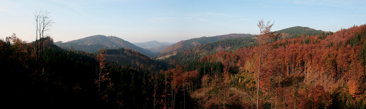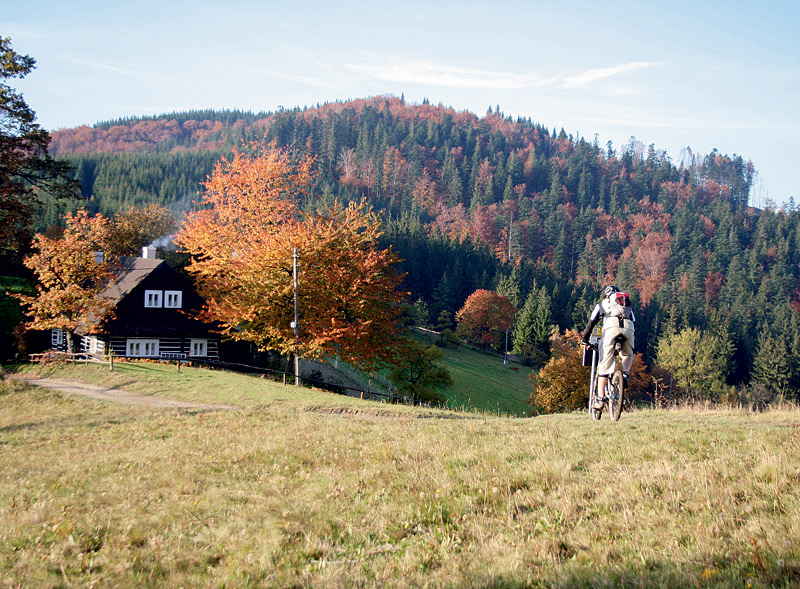 Návrat do Slezských Beskyd následoval za půl roku v jiné sestavě, ale za podobných podmínek. Vracíme se s Pajíkem dorazit přejezd tohoto pohoří až skoro po půl roce. Mistr podzim vybarvil okolí do nádherných pastelových barev a slábnoucí slunce slibovalo přece jen lepší počasí než při první návštěvě. Když vykládáme kola z auta, netušíme, že to zas až tak jednoduché nebude. Za půl roku se toho změnilo mnohem víc než jen zbarvení okolních stromů, a když pomalu vyjíždíme z Bystřice směrem k horám, přemýšlím o přejezdech pohoří, které jsem již pro Velo napsal a které zřejmě již tímto článkem zakončím. Střídalo se počasí, místa i sestavy mých společníků, kdo ví, co a jak bude za rok…