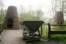 Brzo začínáme ostře stoupat. Hned od počátku tak vidíme, že ani tyhle hory zadarmo nebudou. Z turistické značky odbočíme podle mapy na neznačenou cestu, kterou klesneme na cykloturistickou trasu 6086 a na ní navštívíme v mapě objevené muzeum vápenných pecí – u cesty stojí stará pec, vozík a několik cedulí vysvětlujících, co se tu kdysi dělo. Po pořízení několika fotek a prohlídce místa pokračujeme opět po cyklotrase dál. Cesta se začíná zvedat ve skrytu stromů, jediné zpestření nám poskytne tvor z klanu přežvýkavců výtryskem proudu, ze který by se nemusela stydět jakákoli stříkačka čackých hasičů – jenže tahle kráva jej má z přírodních zdrojů a ne z cisterny.