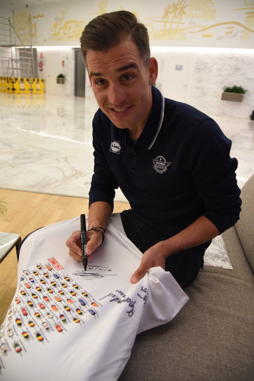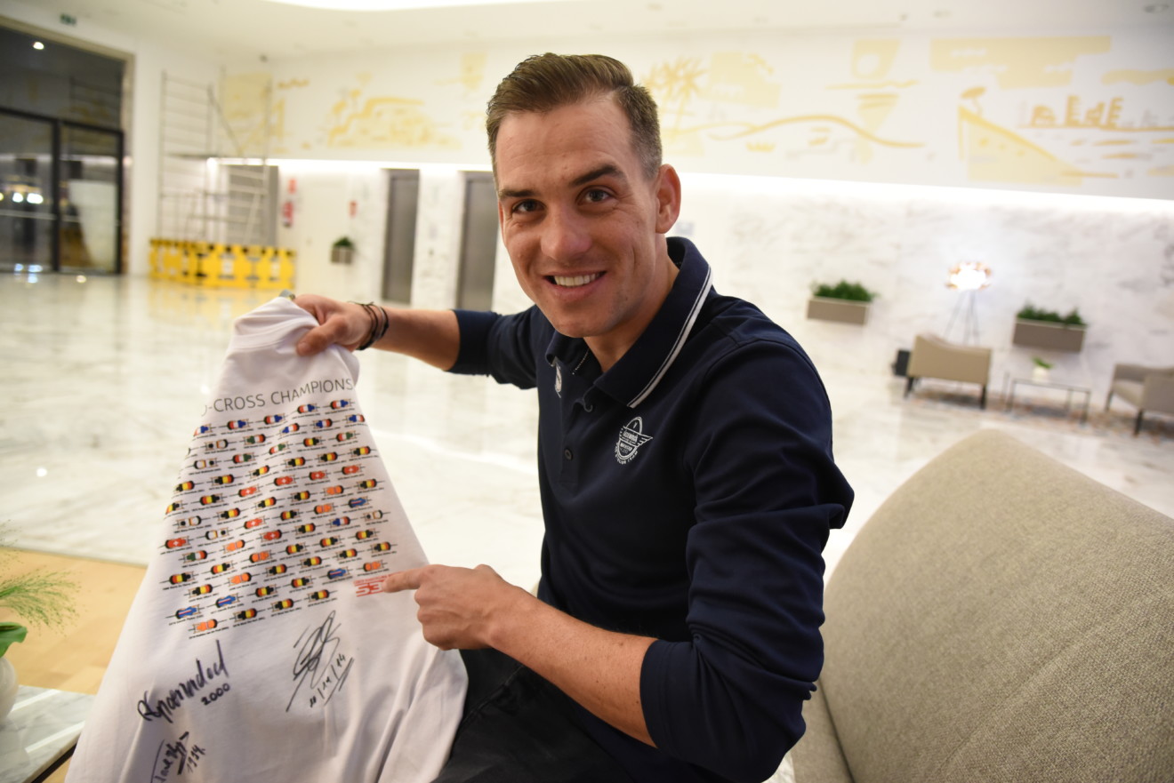 Zdeněk Štybar přidal svůj podpis na triko se všemi cyklokrosovými mistry světa.
