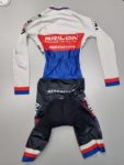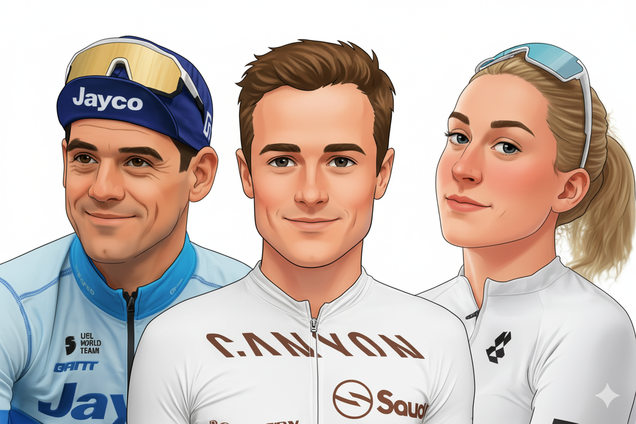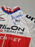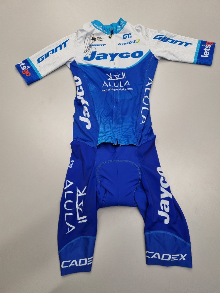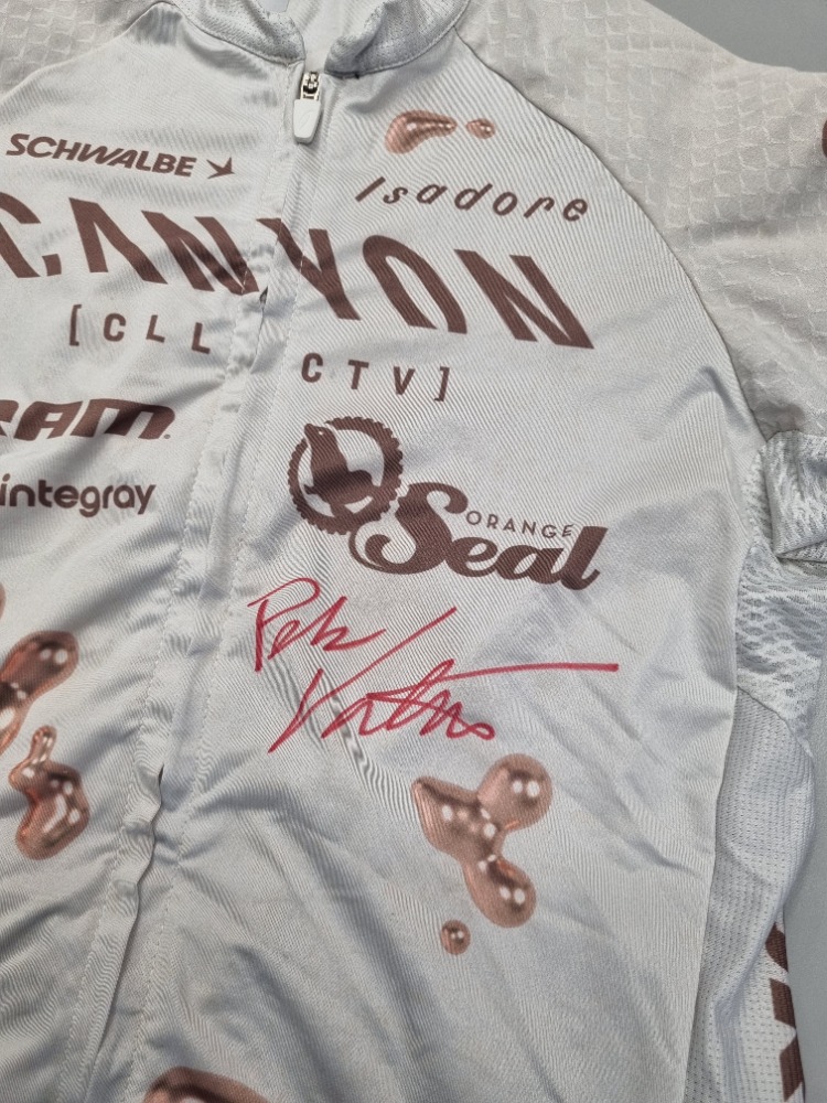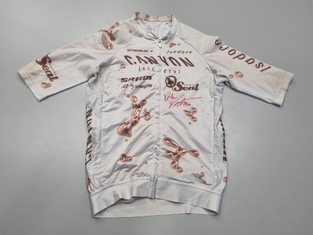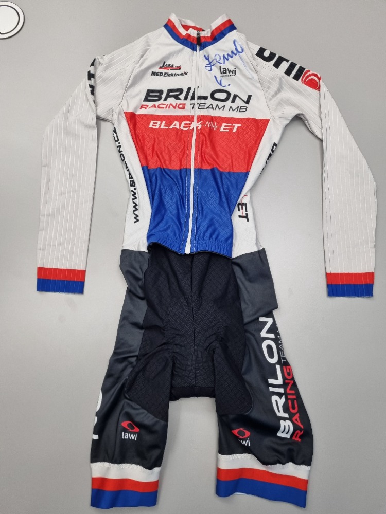 Jeden z dresů patří Petru Vakočovi, vícemistru Evropy v silniční cyklistice do 23 let, který se účastnil Giro d’Italia a dalších světových závodů. Po vážné dopravní nehodě se dokázal vrátit do profesionálního pelotonu a stal se symbolem houževnatosti a odhodlání. Další dres je jakýmsi sportovním artefaktem legendy české cyklistiky, Zdeňka Štybara. Kdo by nevěděl, jde o bývalého profesionálního silničního závodníka, pětinásobného mistra světa v cyklokrosu a účastníka Tour de France. Poslední charitativní kousek je od Kristýny Zemanové. Kristýna je naopak mladá česká reprezentantka v cyklokrosu a silniční cyklistice. Na svém kontě má čtyři tituly z MČR v cyklokrosu a stříbro i bronz z mistrovství světa do 23 let. V roce 2023 se stala královnou české cyklistiky a úspěchy sbírá i na silnici.